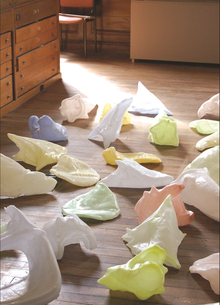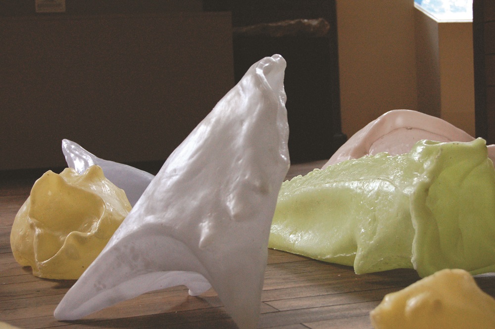 Aujourd’hui retournés à l’état de paraffine, ces fossiles chimériques ont engagé un dialogue silencieux avec les collections du musée. Leur forme, leur couleur, leur matière venaient joyeusement narguer les vestiges de l’histoire. Et tant mieux.