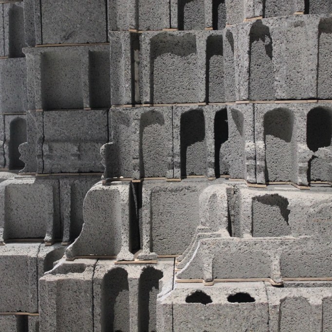 Je les utilise comme un répertoire de formes. Je les fais sortir de leurs champs de perception habituelle pour les introduire dans le champ de la sculpture. Je propose de les regarder autrement, de redécouvrir leurs qualités formelles et sculpturales. J’y ai présenté deux approches qui se croisent et se complètent : les bâtis hors-sol et la fiction Chanteloup.
