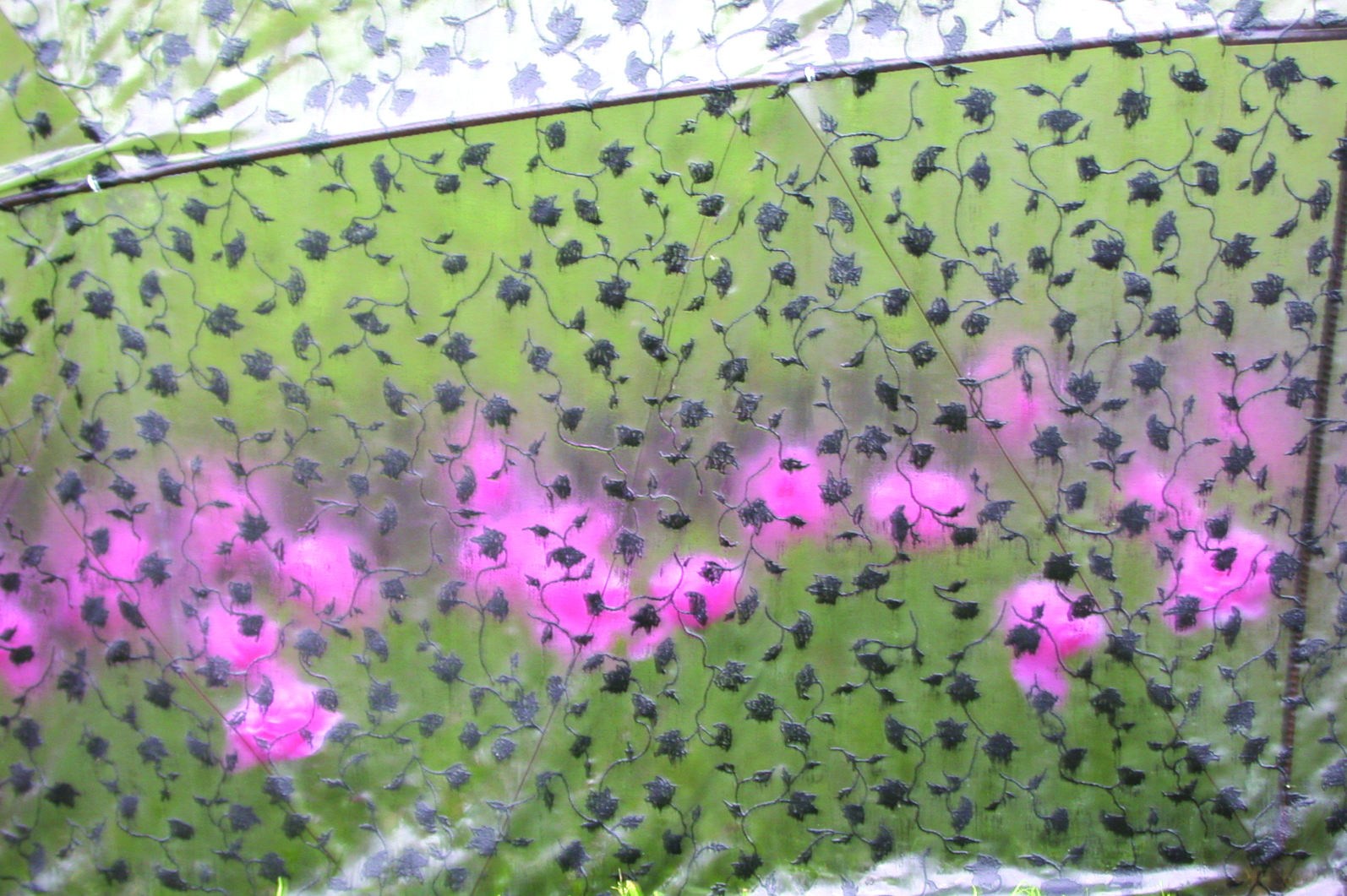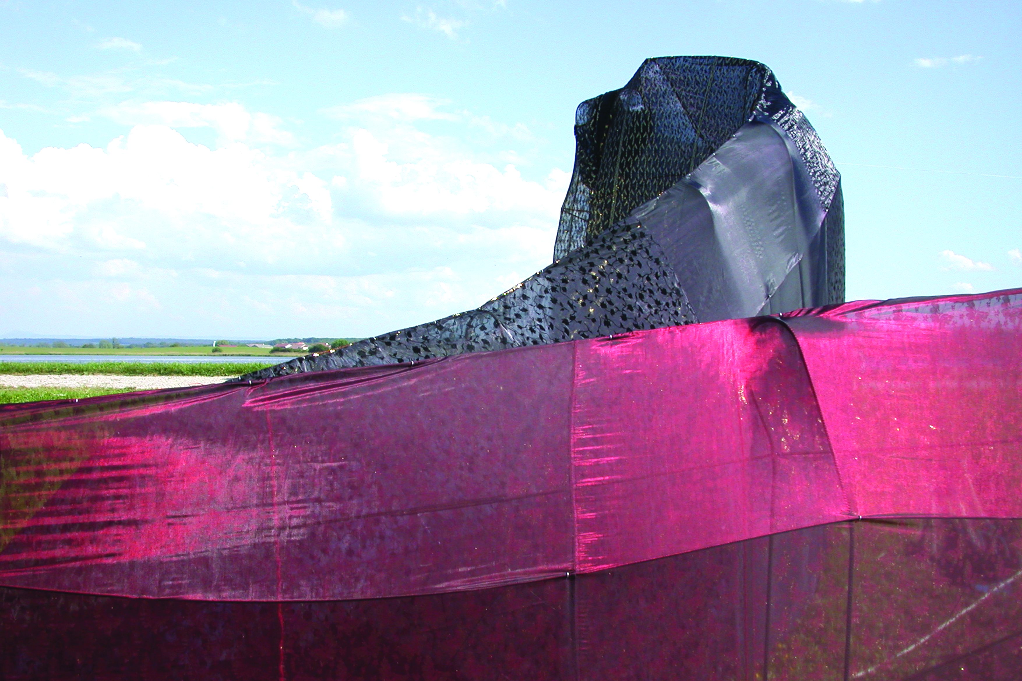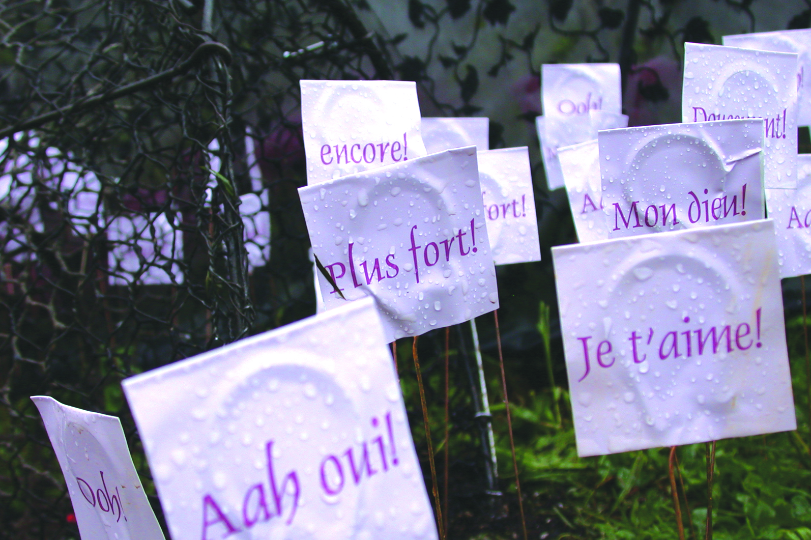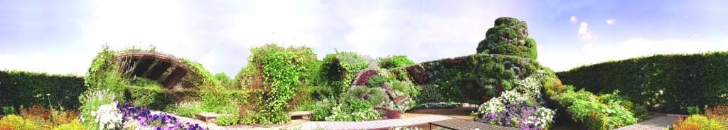 Jardin éphémère, 300m2, structure métallique, tissus, fleurs artificielles, fleurs naturelles